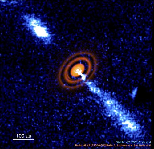 جتها (فورانها) در فرایند شلگیری ستارهها چگونه به وجود میآیند ؟ هنوز هیچ کس مطمئن نیست، اگر چه به تازگی در تصاویری از شکلگیری منظومه ستاره جوان HD 163296 به وضوح مشخص است. در این تصویر ستارهی مرکزی هنوز در حال شکلگیری است اما یک قُرص چرخان و یک جت متحرک به سمت بیرون هم دیده میشود. این قرص را آرایه میلیمتری بزرگ آتاکاما در شیلی (آلما) در طول موج رادیویی ثبت کردهاشت و شکافهایی را نشان میدهد که احتمالا به علت گرانش سیارات بسیار جوان به وجود آمدهاند. این جت که تلسکوپ VLT در نور مرئی ثبت کرده است و آن هم در شیلی قرار دارد، گاز در حال حرکت سریع که عمدتا هیدروژن است را از مرکز قرص خارج میکند. این منظومه صدها برابر فاصله زمین و خورشید گستردگی دارد. جزئیات این مشاهدات جدید به تقویت حدسیاتی چگونگی به وجود آمدن جتها و حداقل بخشی که میدان های مغناطیسی موجود در قرص ایجاد میکند و تفسیر آن کمک میکند. مشاهدات آینده از HD 163296 و سایر منظومههای مشابه شکلگیری ستارهها ممکن است به پر کردن برخی جزئیات کمک کند.