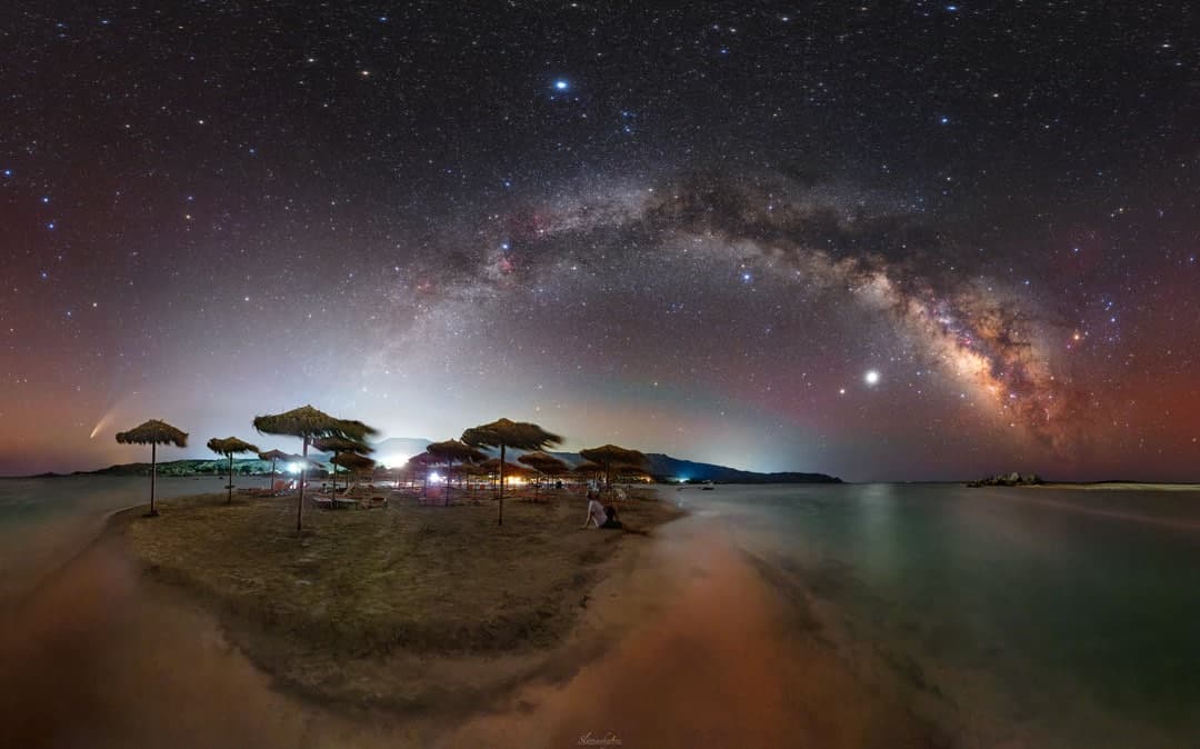 ماه جولای بود و مکان جزیره کرت یونان بود و آسمان نیز دیدنی بود. البته ستاره های معمولی مانند ستاره قطبی، وگا یا کرکس نشسته و قلب العقرب وجود داشتند و البته آن صورت فلکی معروفی که همه می شناسند: دب اکبر. اما این تازه شروع کار بود. صفحه کهکشان راه شیری مانند پل قوسی از ستارگان و گرد و غبار، اما مزین شده با سحابی های قرمز رنگ، مانند آب نبات همه را حیرت زده می کرد. سیارات زحل و مشتری آنقدر درخشان بودند که می خواستید مردم را در ساحل متوقف کنید و به آنها اشاره کنید. هوا مانند یک رنگین کمان می درخشید، اما آنچه واقعا این شکوه را تکمیل کرد یک دنباله دار بود. دقیقاً بالای افق شمالی، دنباله دار نئووایز دنباله خود را بصورت بی نظیری گسترانده بود. فقط یک کار برای انجام دادن وجود داشت: عکاسی.