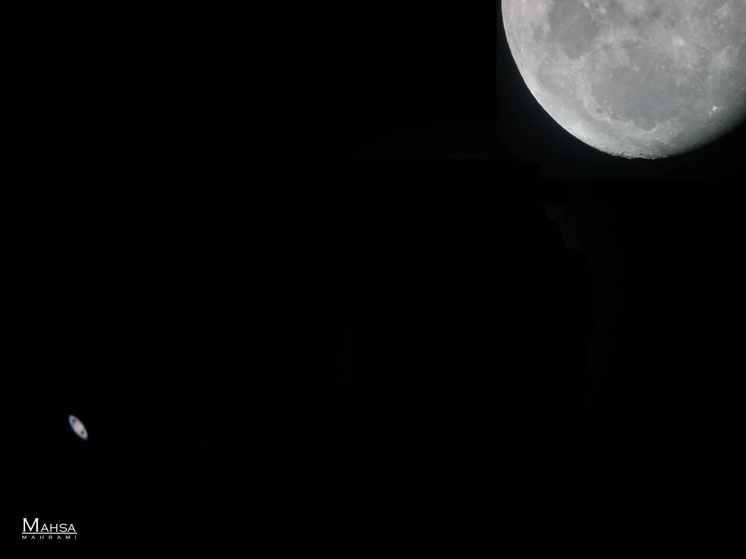 این عکس توسط گوشی موبایل از درون چشمی 30 میلیمتری تلسکوپ 8 اینچ دابسونی به صورت آفوکال گرفته شده. تصویر زحل برای واضح تر شدن، چند تا فریم از این تصویر روی قسمت زحل، برهمنهی و ترکیب شده.