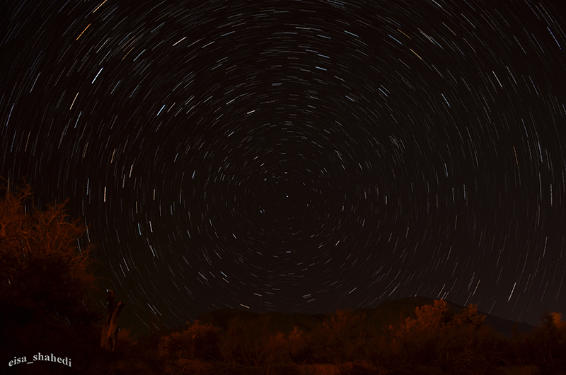 با عرض خوش آمد به شما به این سایت عکس خوبی گرفته اید. به نظر میرسه که نوردهی شما در مجموع کم بوده برای افزایش کمان ستارگان میتونستید نوردهی را بیشتر کنید. همچنین نور زمینه پایین عکس مناظر زمینی کم هست با ابزار کروز در فتوشاپ میتونید کمی این نور را بیشتر کنید. همچنین میتونین در شبهایی که هلال ماه باریک هست عکاسی را انجام دهید تا مناظر زمینی مناسبتر به نظر برسند.