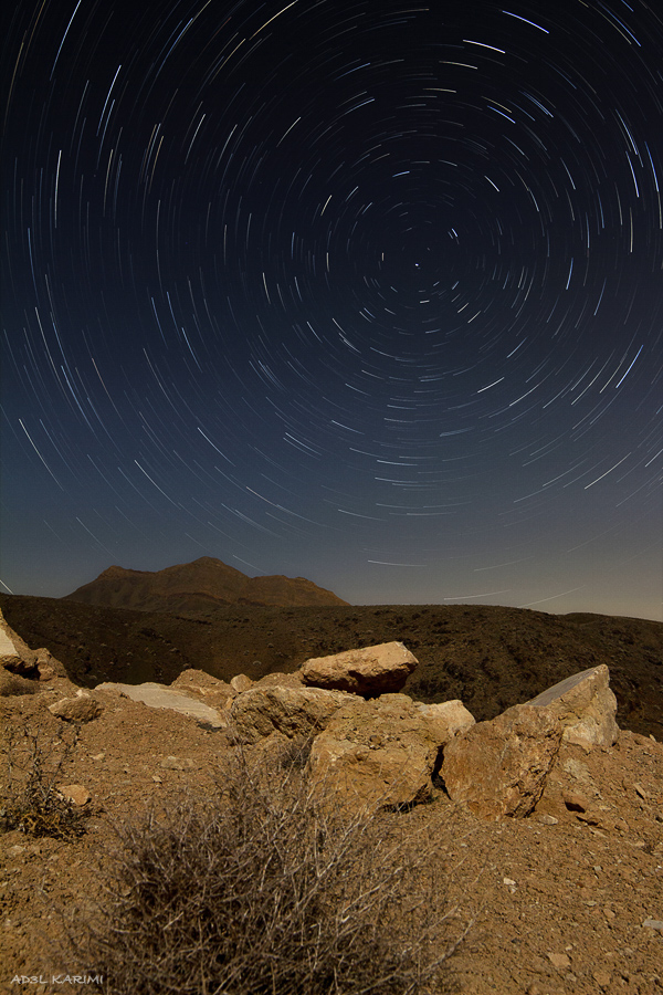 برزُک کاشان با سابقه 5000 ساله یکی از زیباترین مناطقی بود که تا به حال دیده ام. متأسفانه در زمان ماه کامل آنجا بودم و به دلیل روشنایی زیاد آسمان، امکان عکاسی در قسمتهای داخلی برزک -با مناظر خانه های قدیمی و درختان- نبود (به دلیل اینکه علاوه بر روشنایی آسمان، در این منطقه چراغ کوچه ها نیز آلودگی نوری ایجاد کرده بود). ناچار در کوه های اطراف این منطقه که سوژه دیگری غیر از سنگ نبود این عکس را گرفتم..