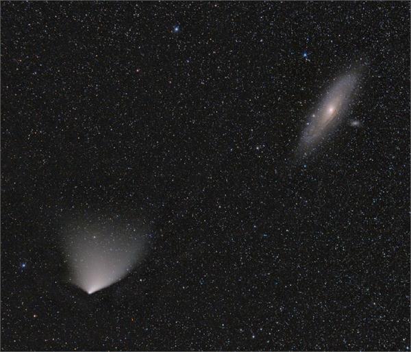 دنباله دار پن استارز PanSTARRS در کنار کهکشان M31