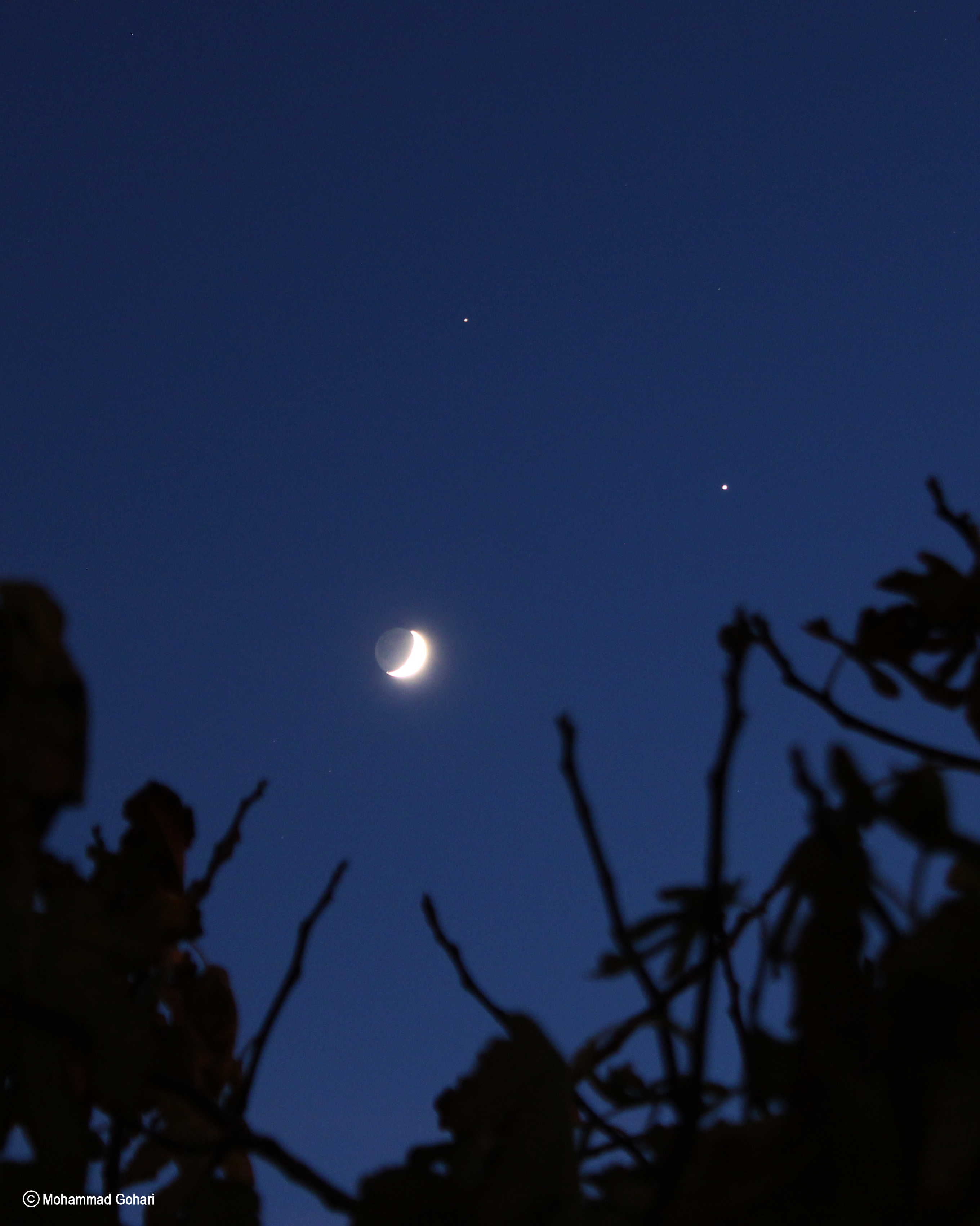 همنشینی هلال ماه با غول های گازی منظومه شمسی در شامگاه ۲۹ آبان
